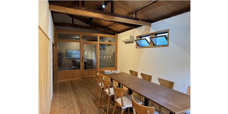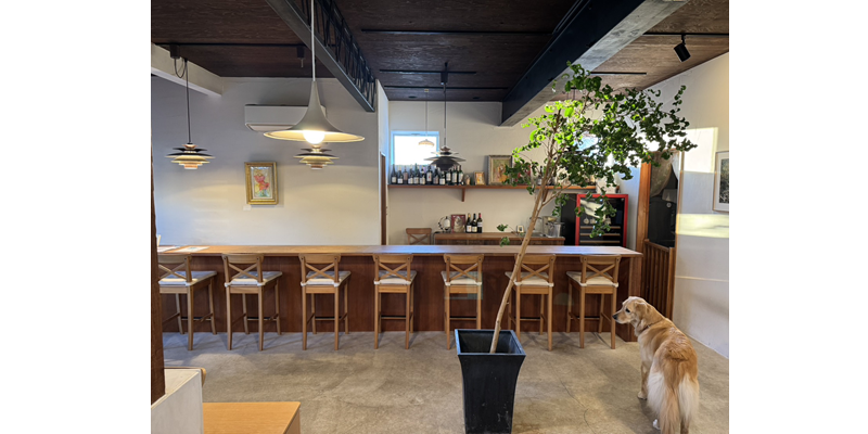 海から徒歩5分程度の静かな住宅地にあります。カフェとワインとお食事が楽しめる店舗です。