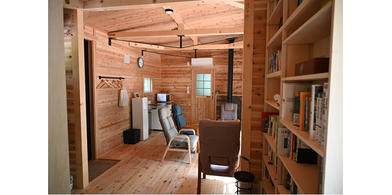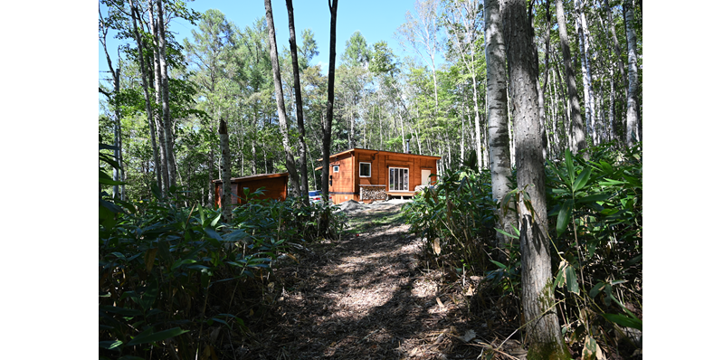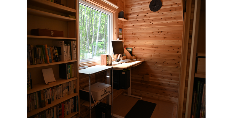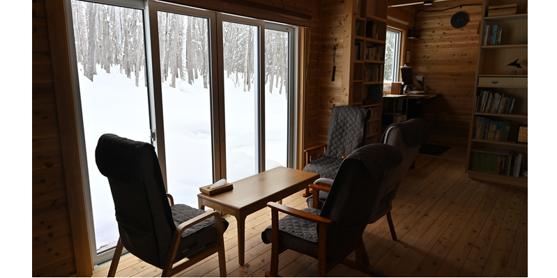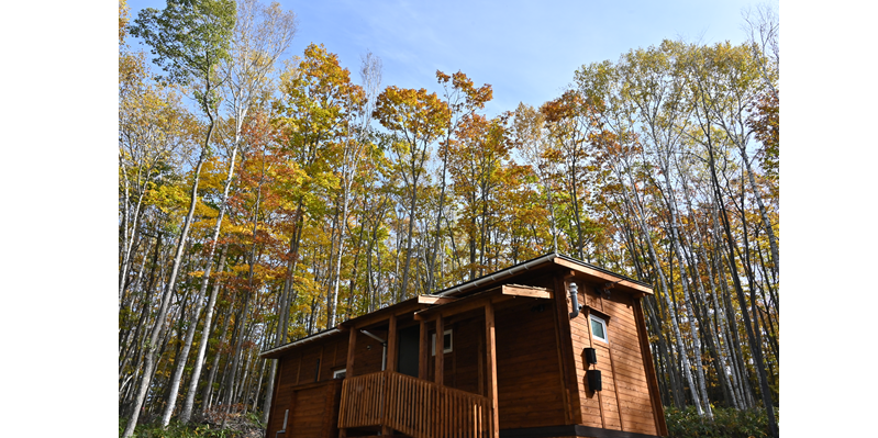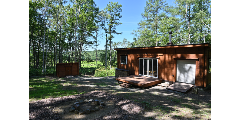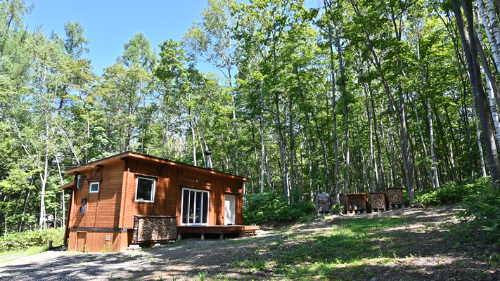 大自然の中に建てられた平屋の小屋です。森には約800mの遊歩道があり、人工物の映り込みがない自然環